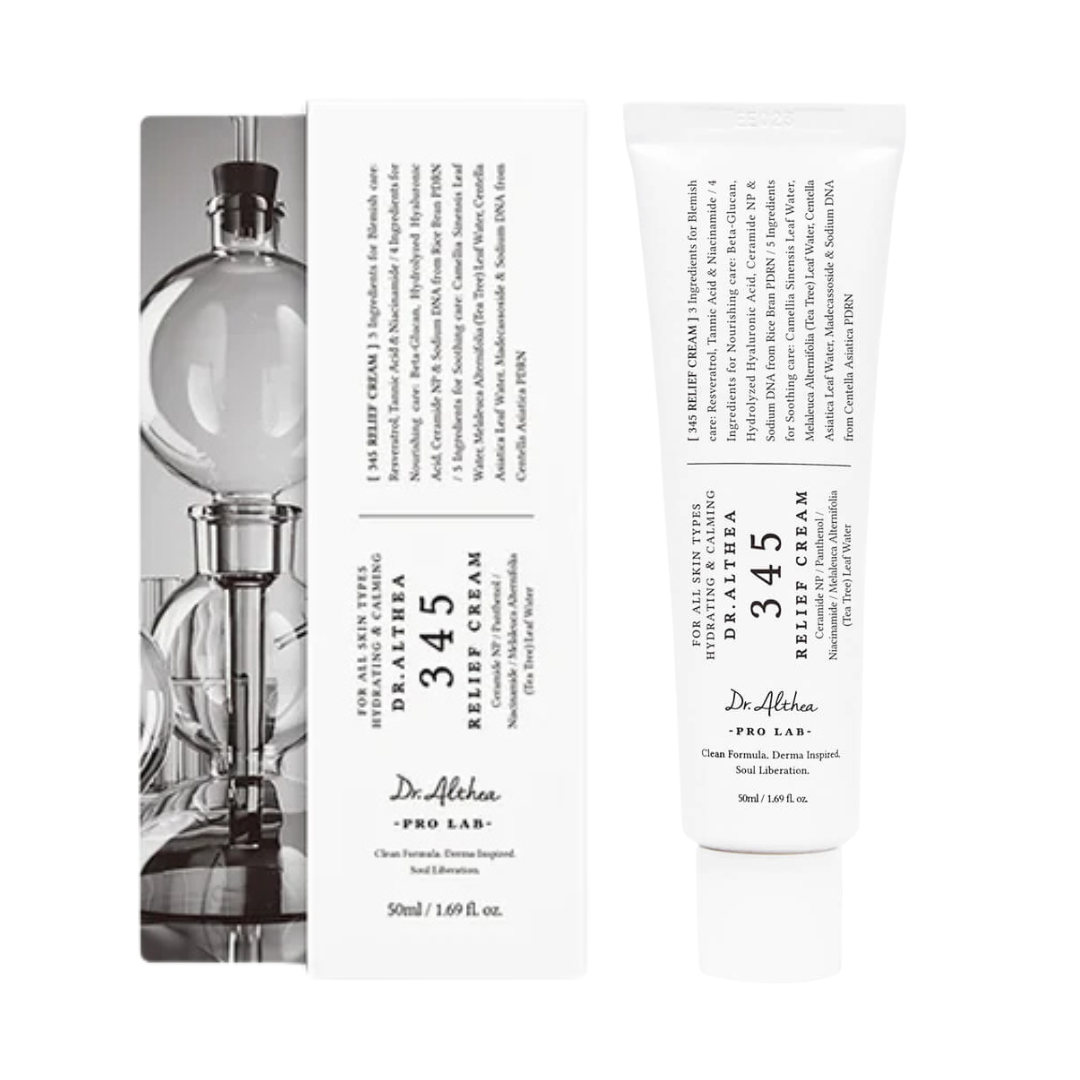 Dr. Althea 345 Relief Cream is a regenerating gel cream rich in nutrients that skillfully combines ingredients to address blemishes, nourish the skin, and provide soothing care, resulting in a well-rounded skincare solution.